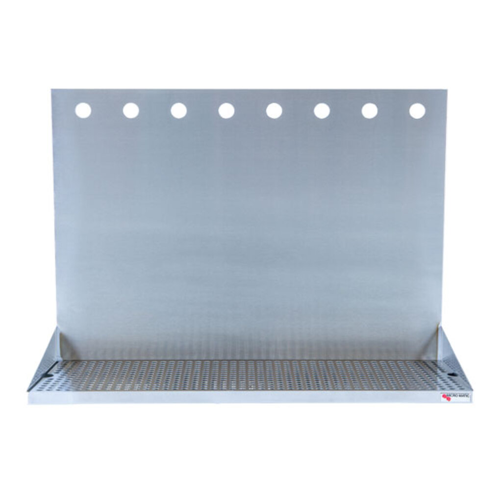 Eight pre-drilled holes to mount shanks through 18" high backsplash which offers an extra 4" of clearance from tray to faucet.
