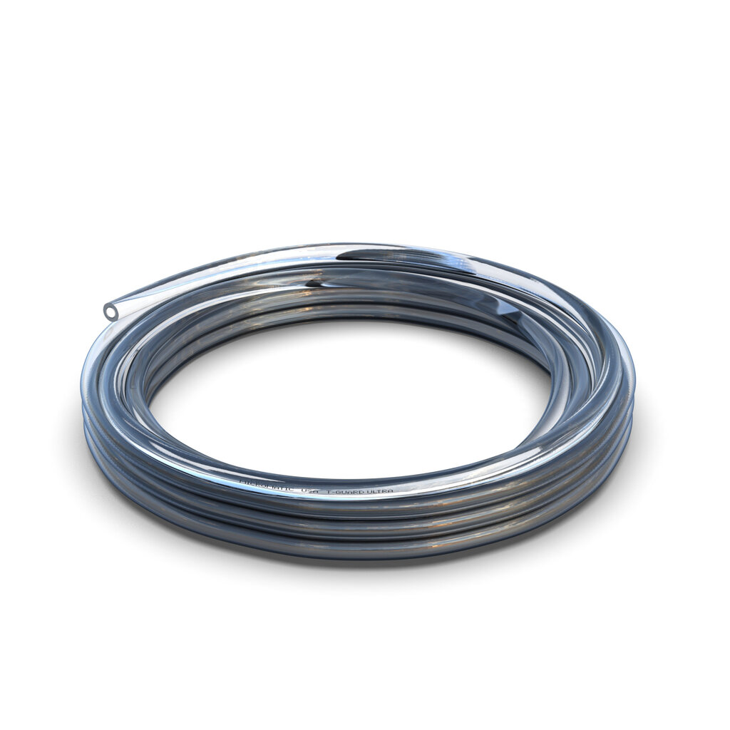 50' coil of 3/8" I.D. Clear T-Guard Ultra® Barrier Vinyl Hose.