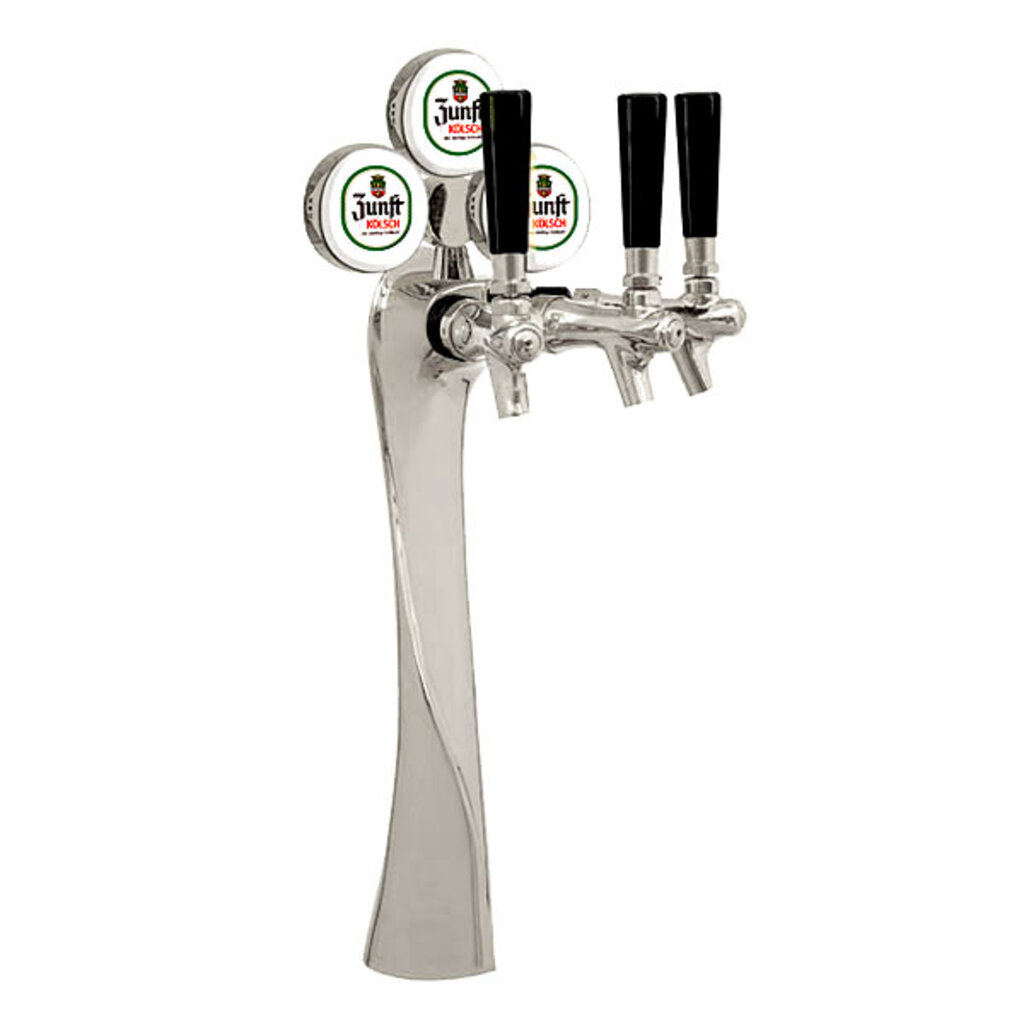 The swirl of the 3 faucet Lucky draft beer towers exudes Italian sexiness and elegance. Lucky draft beer towers add glamour either alone to highlight a special beer or are truly inspiring when grouped in twos or threes. These glycol-cooled draft beer towers are in either highly polished chrome or the warmth of gold. Draw attention to "what's on tap" with the warm glow of lighted brand plaques. (Brewery identification plaques not included.)