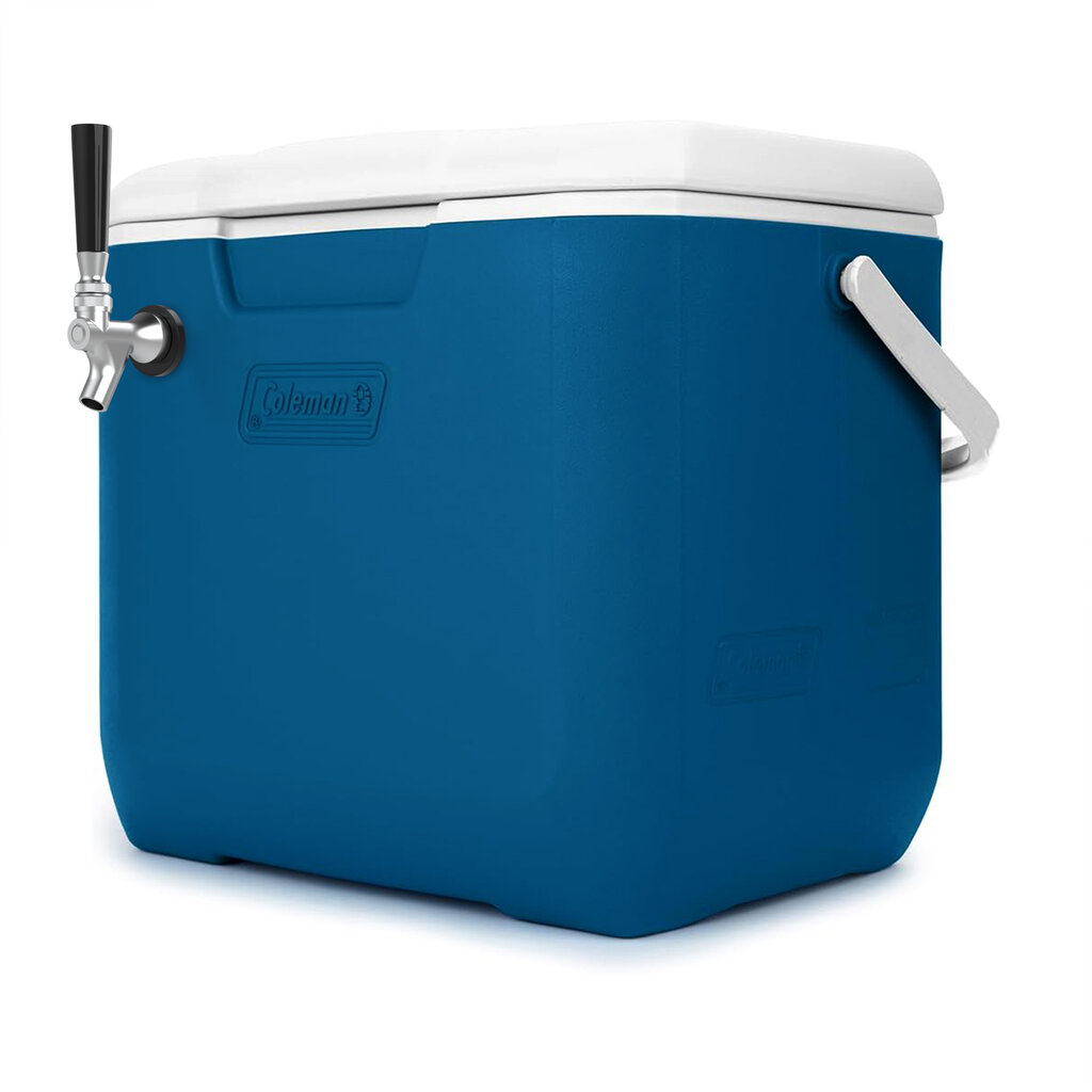 This cooler includes (2) chrome-plated brass faucet with a 5/16" keg connection and (2) 50 ft. coils so you have a steady supply of your most popular beer, and it is fully insulated to ensure the ice and water bath stays at a pleasant chill. Two heavy-duty side handles with tie-down loops allow for easy movement and simple storage, and snap-lock child safety latches help prevent tampering. For fast cleaning, a recessed drain plug in the bottom of the cooler siphons out water. Includes faucets, knobs, shanks, and ice box coupler assemblies.