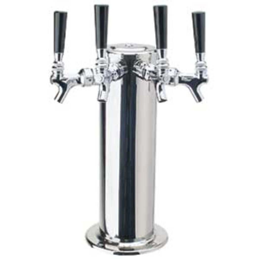 4 Faucets Air Cooled Beer Tower - Polished Stainless Steel - 4" Column