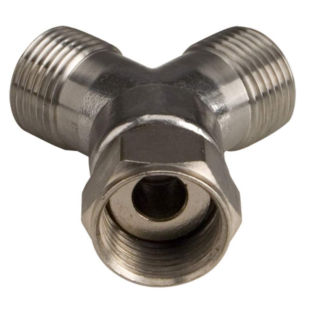 Easily dispense at two faucets from one keg. Simply connect the Beer "Y" fitting to any standard keg coupler. The Hex Nut is chrome plated brass but does not touch the product.