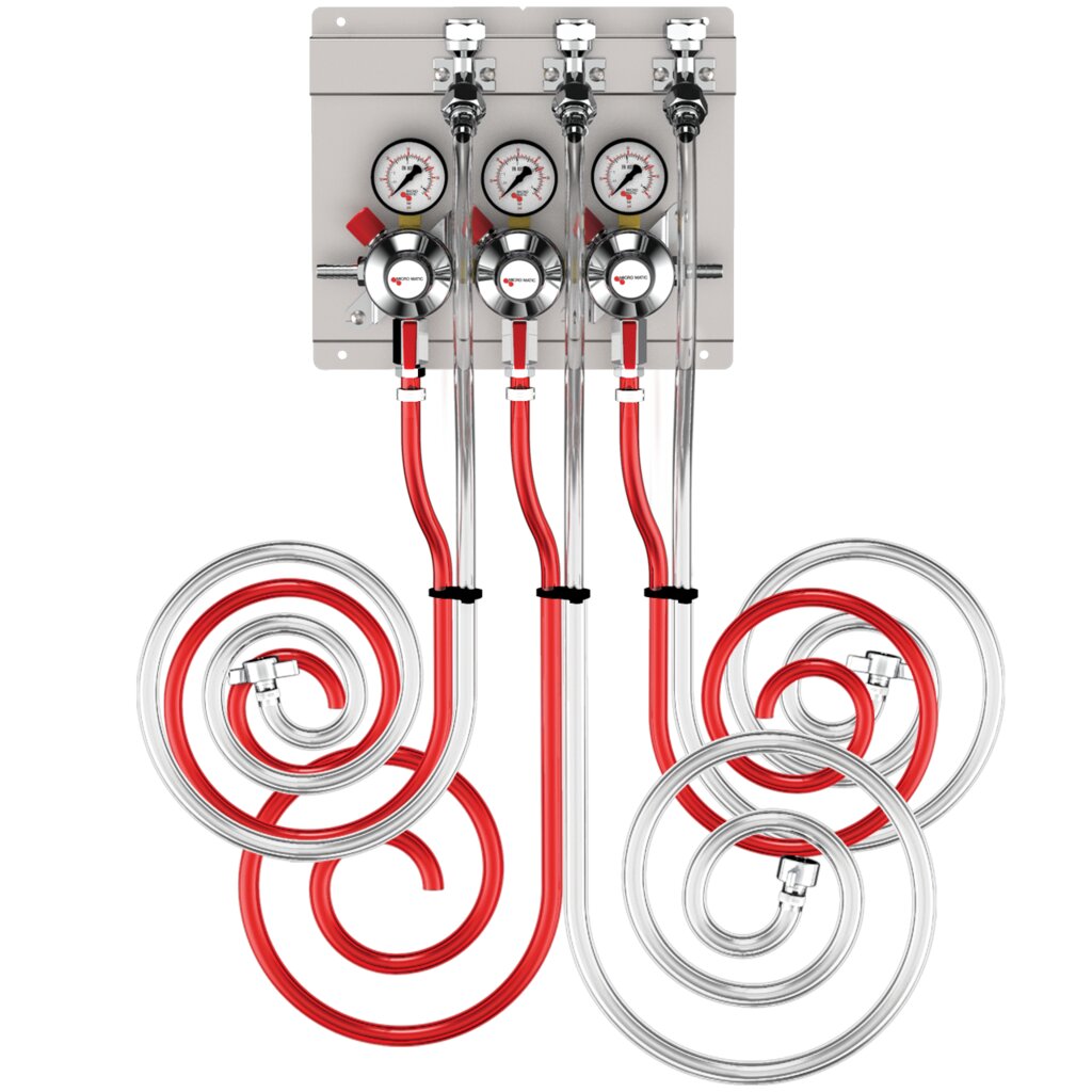- Three gauge secondary regulator, beer and gas hoses for kegs, all on one easy mount panel