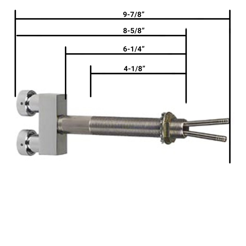 - 6-1/4" double faucet beer shank with chrome-plated crossbar