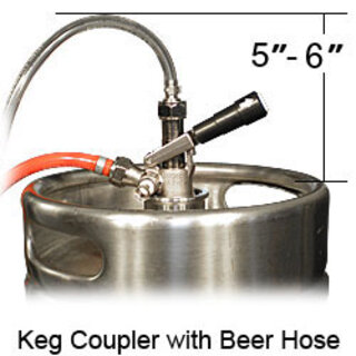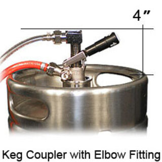 In general, at least 5" to 6" of clearance needs to be allowed above the keg for the keg coupler and beer hose. If you have limited space, an elbow fitting can be used to reduce the clearance to 4". In applications where there is hardly any clearance available, a low profile keg coupler requires only 1" above the keg to be used.