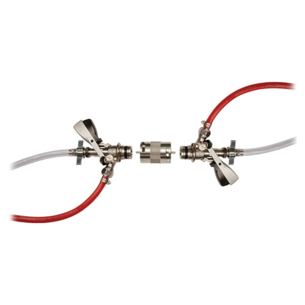 - Connect two (2) U System keg couplers together and flush two beer lines at once