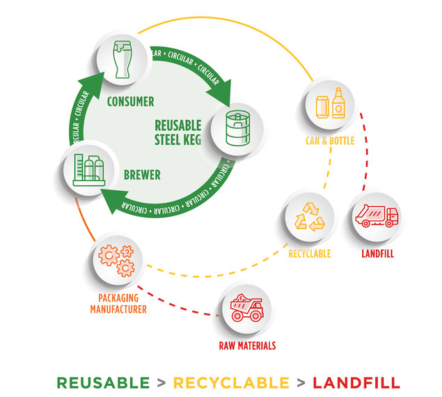 Considering that increasing nationwide recycling rates remains unlikely, bars and restaurants can make a significant impact by offering draught from REUSABLE steel kegs to reduce waste.