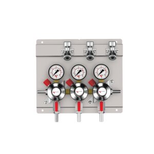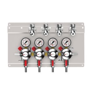 The primary Nitrogen regulator is designed to decrease the gas cylinder’s high pressure to a lower, usable pressure for wine dispensing or servicing a gas blender.