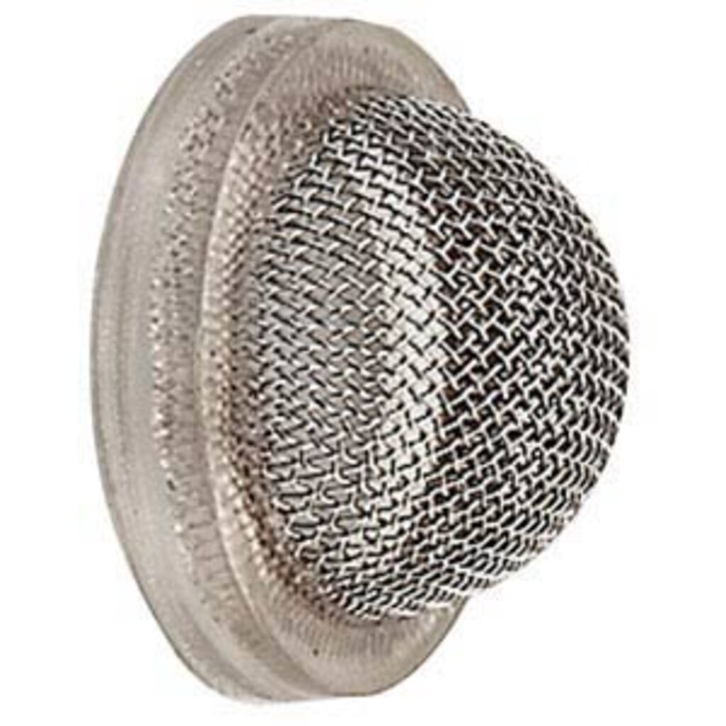 Re—usable filter for use in cask taps to prevent particles entering the beer line. Stainless steel mesh filter Incorporating soft plastic sealing washer.