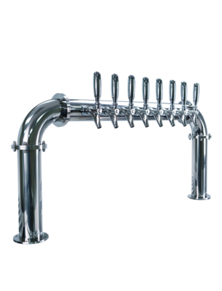 The Biergarten™ series offers a brewery-pipe style but with slimmed-down proportions. The design features a contrast between the 3" diameter uprights and crossbar and 6" flanges. Provide choice for your draft beer customers.