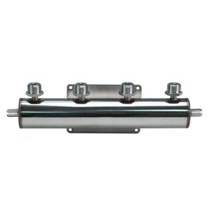4 Way Beer Manifold distribute beer from serving vessel or keg to multiple stations. Mounts securely to wall.
