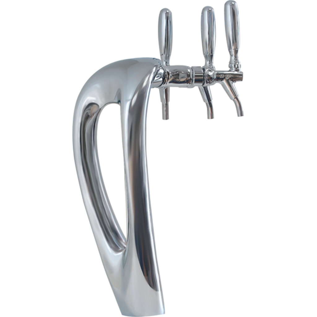 Introducing beautiful modern sculpture for the bar top. Mystique 3 Tap Beer Draft Tower – Chrome Finish has a unique split design has a senuous elegance sure to draw attention to "What's on Tap."