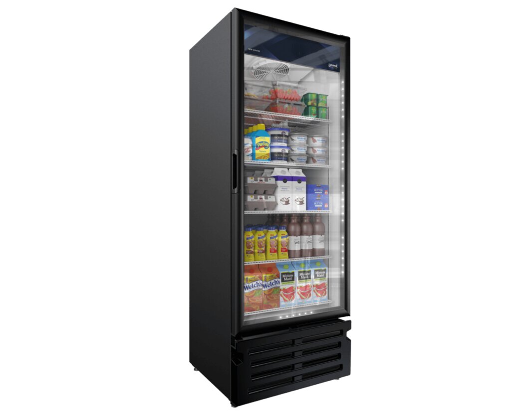 The Imbera® G319 glass door merchandiser operates with a low-maintenance condenser that reduces the accumulation of dust and debris. To facilitate maintenance, its refrigeration system is self-contained and accessible behind a removable plastic front grille. With an electronic temperature controller, users can adjust the temperature within the range of 32 to 44.6˚F. It operates using an electronic fan motor and eco-friendly R290 refrigerant.