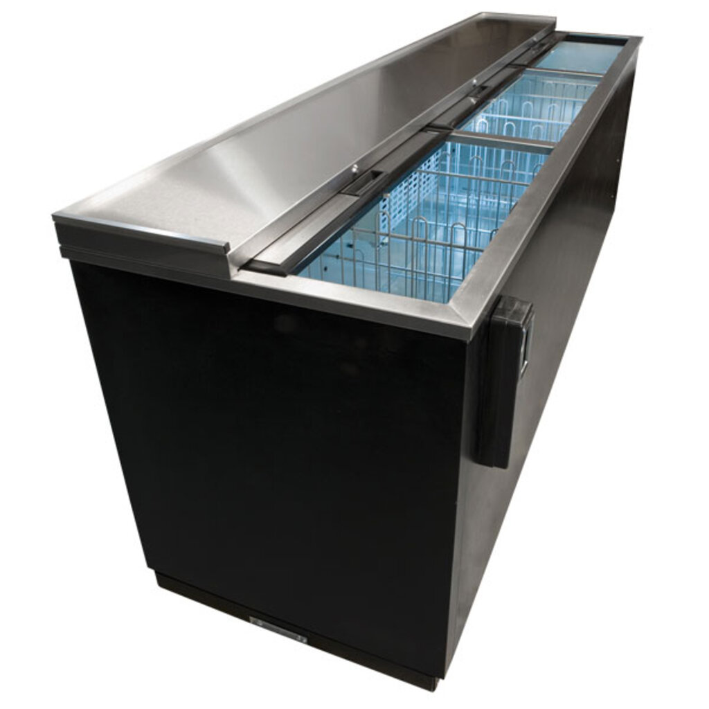 Complete an integrated back bar look with Micro Matic Pro-Line™ Bottle Coolers. An excellent addition to your bar, our units are durable, energy-efficient and loaded with functional features providing the optimal storage and cooling you need for your busy bar environment. Top-loading with a sliding lockable lid, reach-in bottle access is fast, easy and convenient. Stay organized with heavy-duty, epoxy coated adjustable bin dividers. And the rugged galvanized interior is NSF certified for pre-packaged and bottled products.