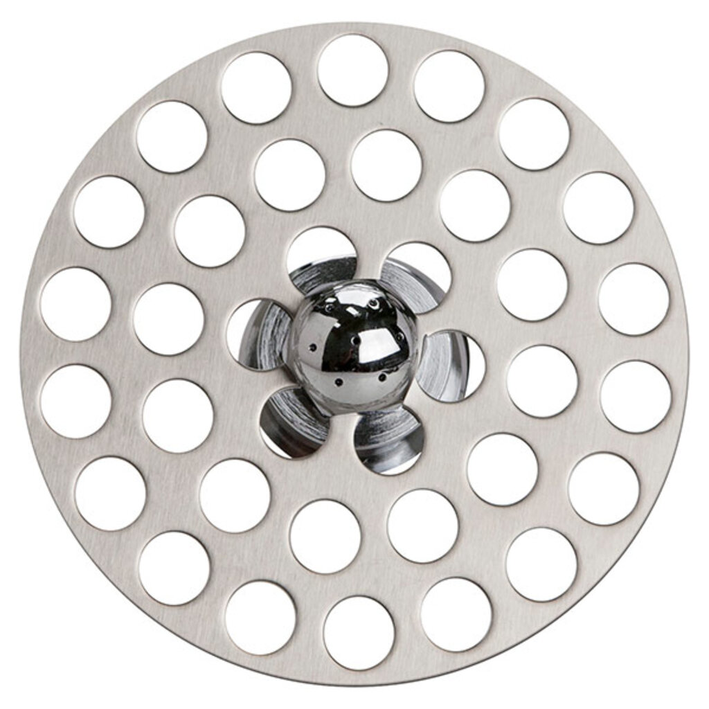 Solid metal glass rinser replacement sprayer with brushed stainless steel perforated grid for use with rinser-style beer drip trays (DP-120 Series). Fits the Pro-Line Direct Draw series drip tray.