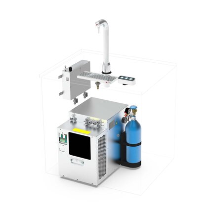 This dispense tower and carbonator are the perfect solution for featuring water on tap. This medium-capacity unit dispenses up to three types of water: ambient, chilled, and carbonated, making it perfect for small cafes or restaurants.