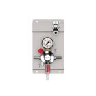 Installation ready! Save time and easily install a secondary regulator for your draft beer system with this pre-assembled beer gas regulator panel. A metal panel makes installation on a walk-in cooler wall easy and features an integrated stainless steel wall bracket that acts as a reliable transition between a keg jumper hose and trunkline connector.