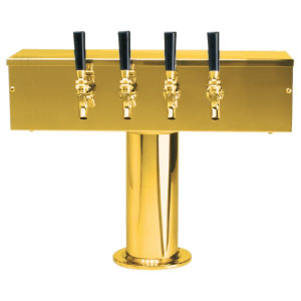 “T” Style 4 Tap Beer Tower - 4” Column - Glycol-Cooled - PVD Brass