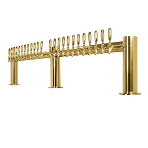 Double Service Pedestal Draft Beer Tower - Glycol-Cooled - PVD Brass - 24 Faucets 304 - 3" Center