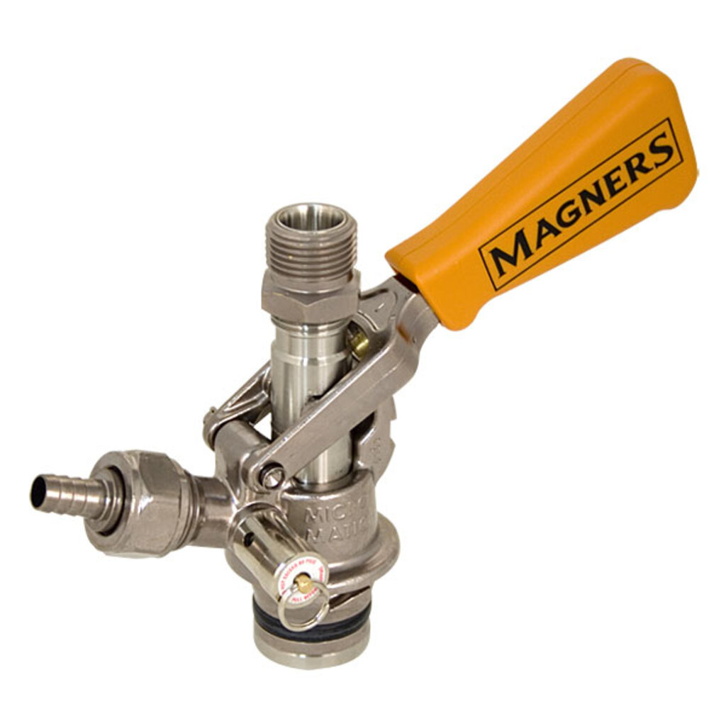 The G40801 coupler is exclusively used with Magners Irish Cider. Using a 304-grade stainless probe steel this coupler is durable and ensures no metallic off-taste for highly acidic beers and ciders. The keg coupler connects to the keg valve, "tapping" the keg. Both the gas line from the CO2 tank/regulator and the beer hose to the beer faucet attach to the coupler.