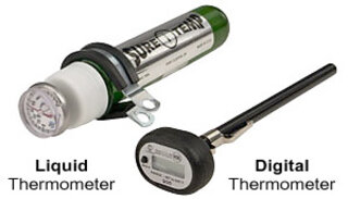 It is most important to check the "liquid" temperature rather than the air temperature where the keg is stored. An ideal method for accurately monitoring the liquid temperature (inside the keg) utilizes a wall-mounted thermometer enclosed in a casing filled with liquid. Always calibrate the thermometer before mounting and place it in an area nearby kegs but possibly in a corner to prevent damage.